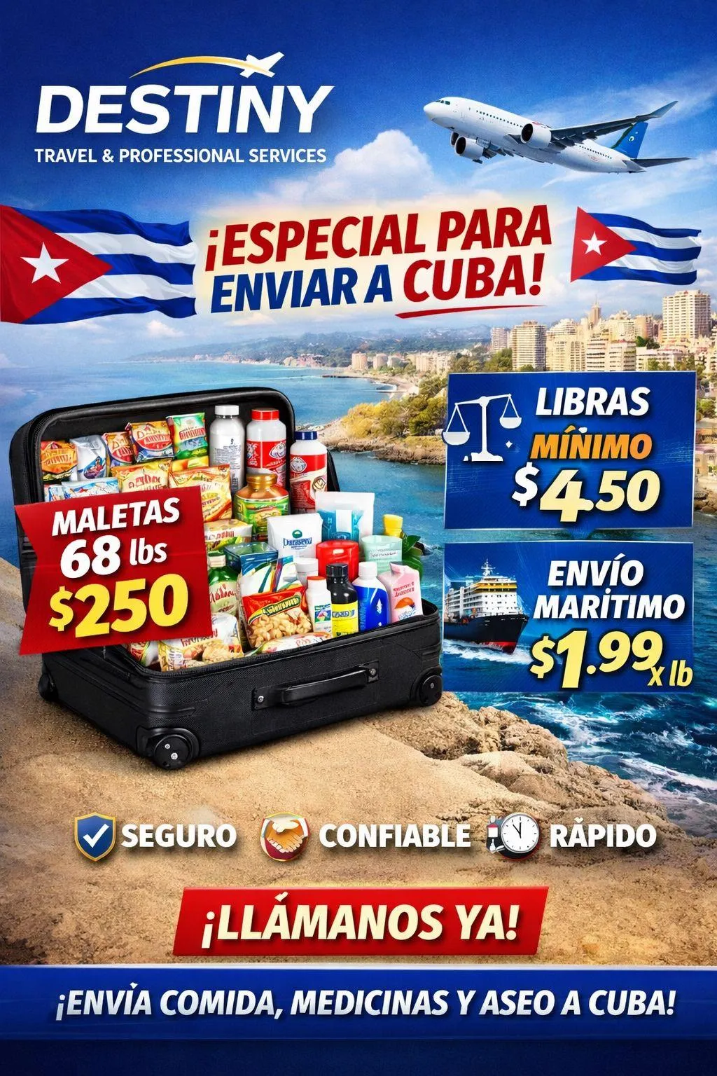 "Nuestro compromiso es conectar familias cubanas con soluciones rápidas y confiables: envios de paquetes, reservas de hoteles, pasajes, trámites de pasaportes y visas, entre otros".